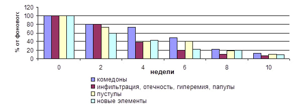 Все пациенты получали специфическую противовоспалительную терапию: антибиотики с учетом чувствительности патогенной флоры, тиосульфата натрия 30%, глюконат кальция, при выявлении клеща демодекс – трихопол или метрогил, витамины группы В1, В6, В12, фолиевая кислоту, рассасывающую терапию – алоэ, ФИБс; препараты улучшающие микроциркуляцию – никотиновая кислота, гепатопротекторы при сопутствующей патологии гепатобилиарной системы, активированный уголь, хилак-форте, линекс, иммуноглобулины.